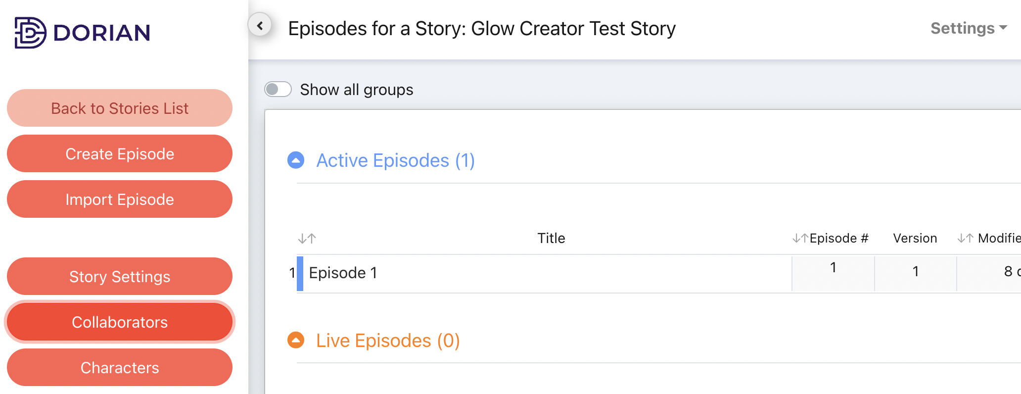 Can separately be given Analytics permissions, meaning they can see both the episode-level analytics (completion rate & # episode starts), and the per-episode Analytics view (viewer dropoff per node, choice option percentages chosen).