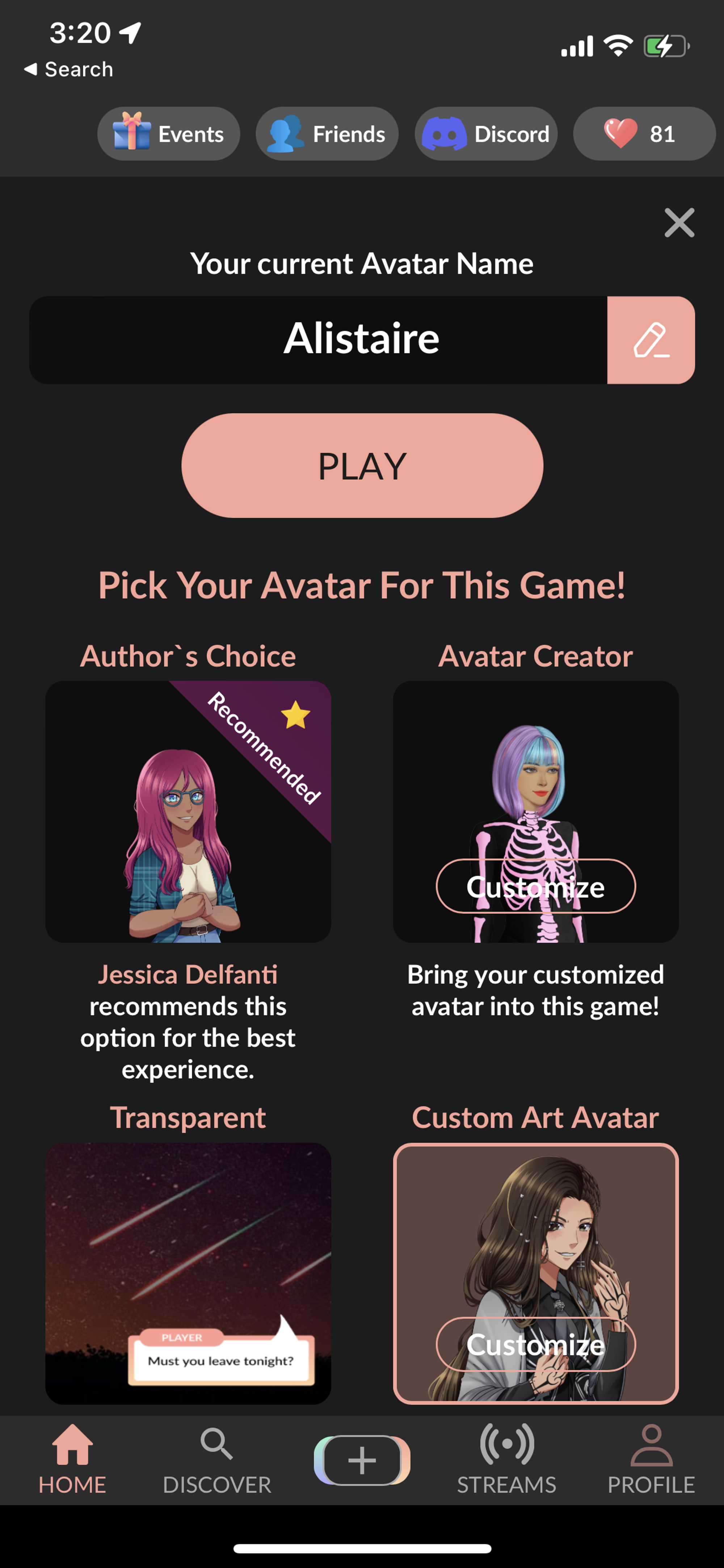 Author’s Choice - This selects the avatar as envisioned by the creator. We recommend players use this to get the best experience!